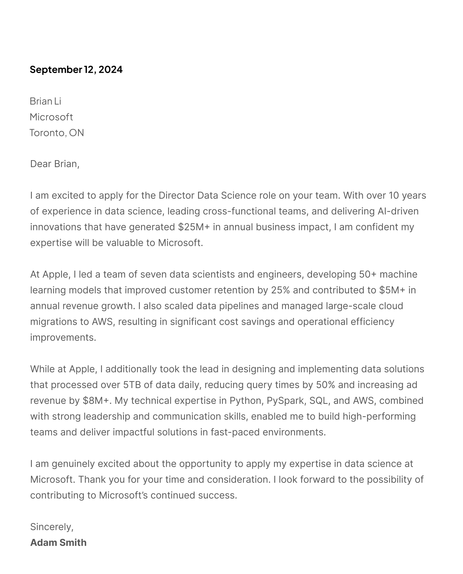 Personalized, role‑specific letters in minutes — confident, concise, and on‑brand.