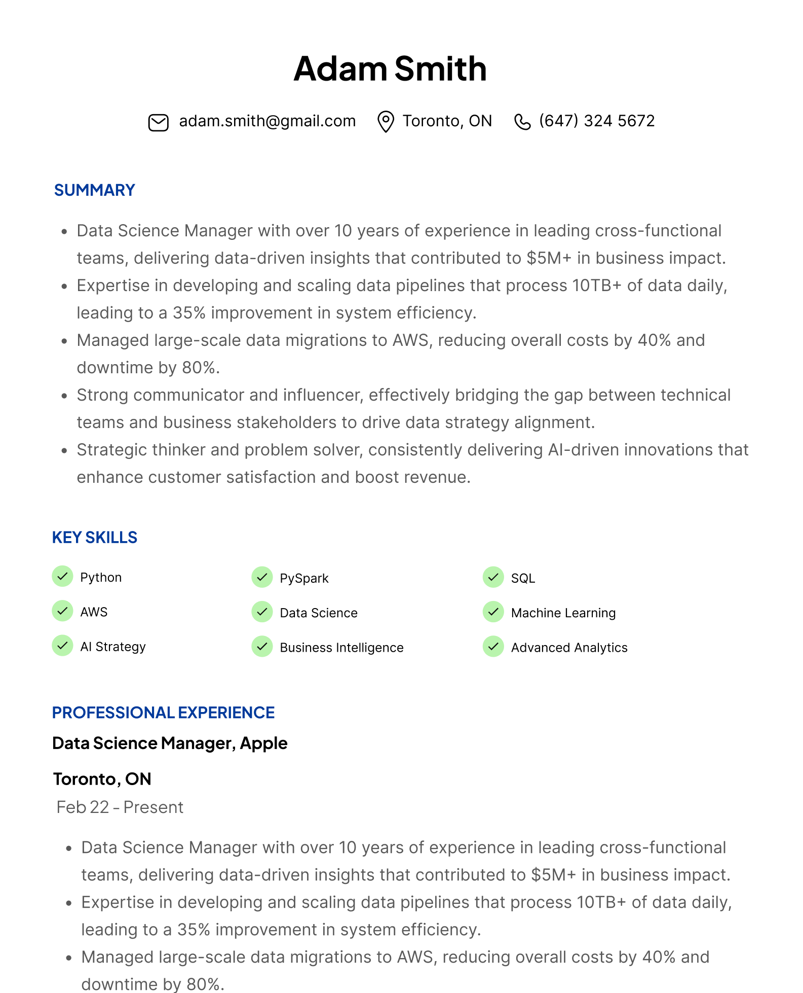 Tailored content, quantified outcomes, polished design—ready to send today.
