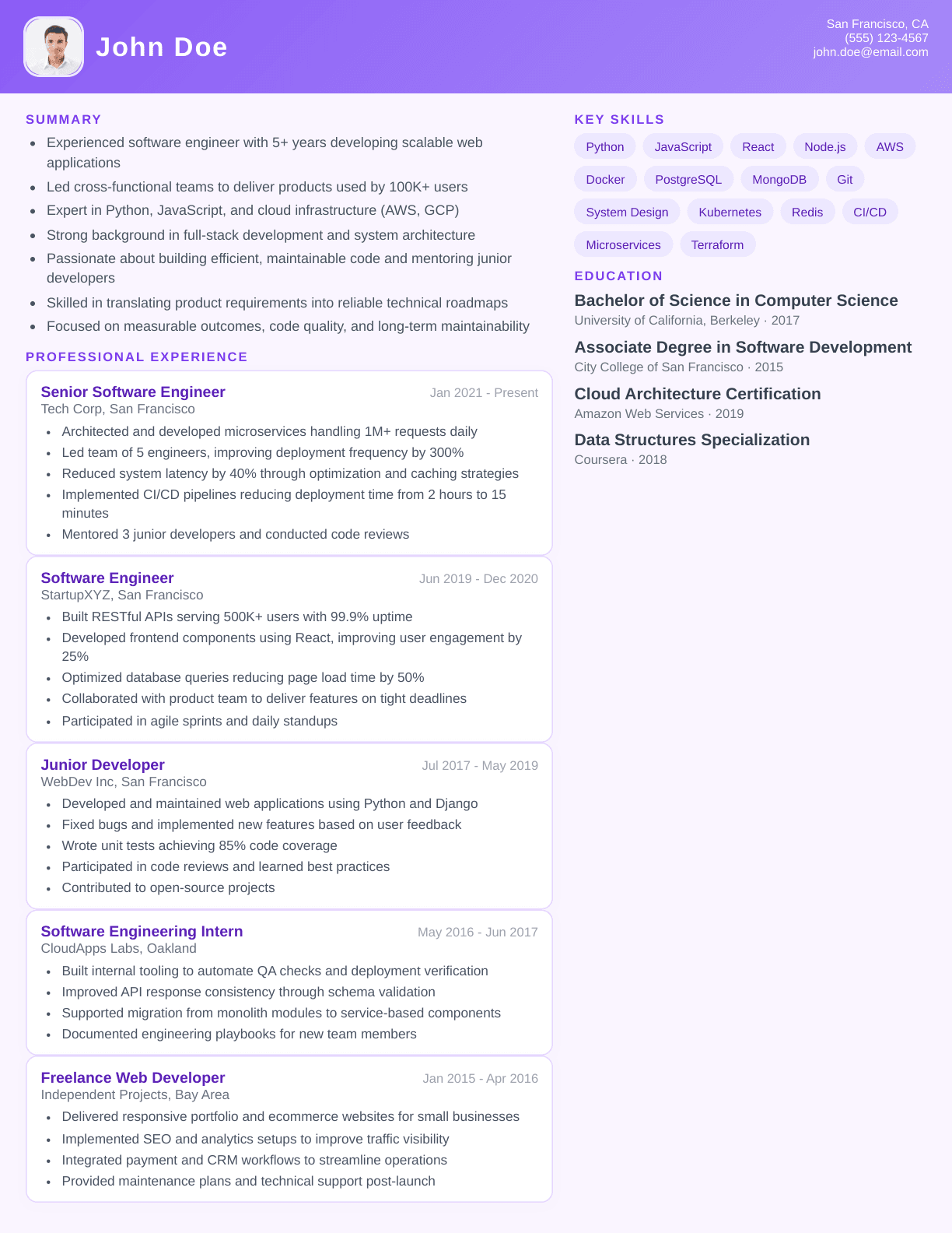 Filter by style, open a full-size preview, and sign up to apply any layout to your resume.